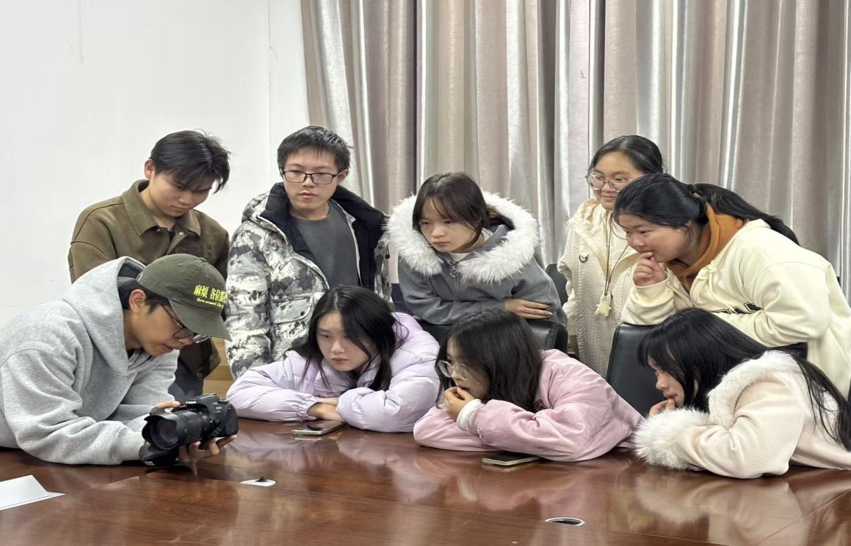 技能培训环节干货满满。杨帆以“实用拍摄技巧”为主题,从相机参数调试到构图逻辑拆解,手把手传授实操经验。“室内活动拍摄建议将快门速度调至1/125秒,能有效避免画面模糊”“遵循‘三分法’构图,把主体放在画面交叉点上更显专业”,他结合自身工作经历,针对对焦模糊、曝光过度等常见问题现场演示纠正,让新成员快速掌握了活动拍摄的核心技巧。