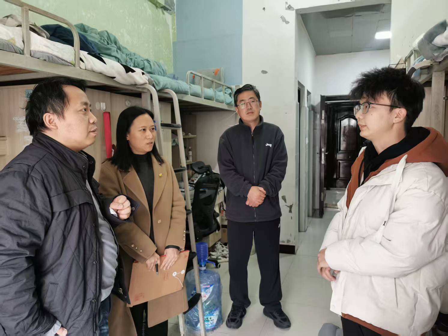 党委书记王燕妮带队,学院领导班子、全体辅导员和班主任共同参与,开展新学期宿舍走访工作。