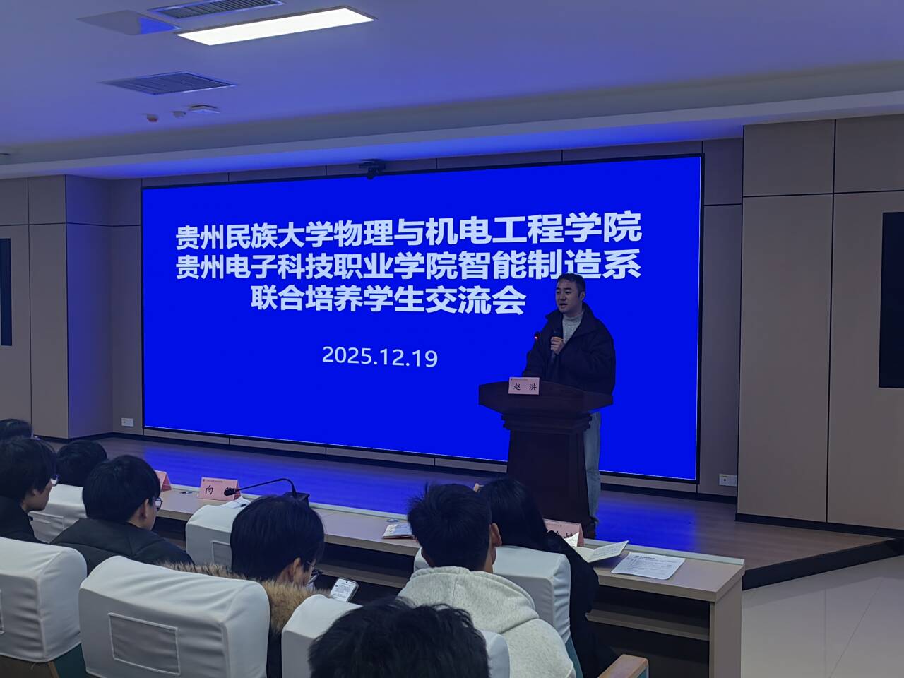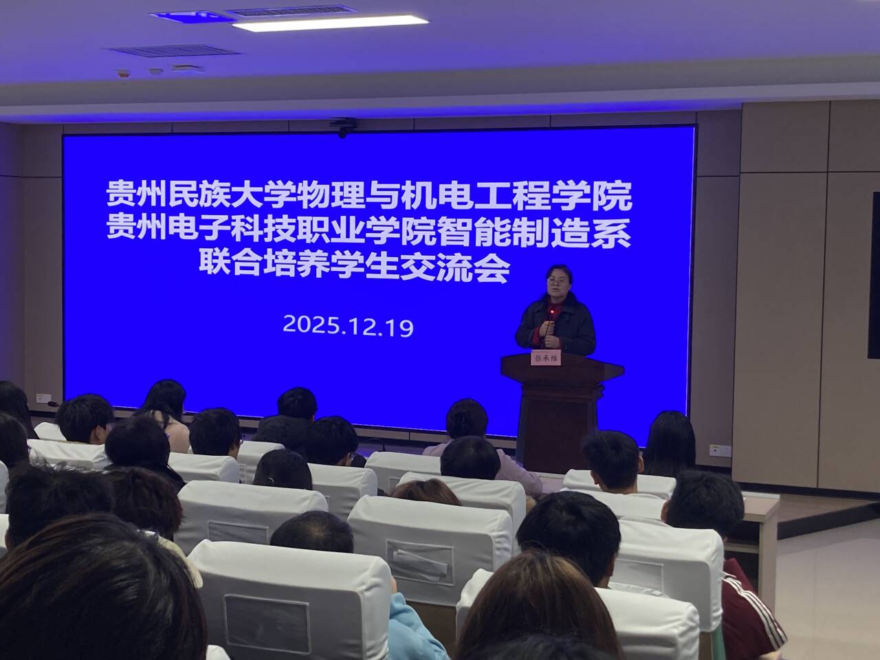 2025年12月19日10:30,为进一步深化校际联合培养工作,明确自动化(专升本)学生培养目标、毕业要求及发展路径,切实解决学生学业与发展中的困惑,做爱视频-视频做爱 与贵州电子科技职业学院智能制造系在贵州电子科技职业学院凌飞坊四楼报告厅,联合举办自动化(专升本)联合培养学生座谈交流会。会议由贵州电子科技职业学院智能制造系党总支副书记、教工党支部书记何金焕主持,做爱视频-视频做爱 党委副书记管延庆、副院长杨盛毅一行7人及辅导员、班主任与2024级、2025级150余名学生共同参会。